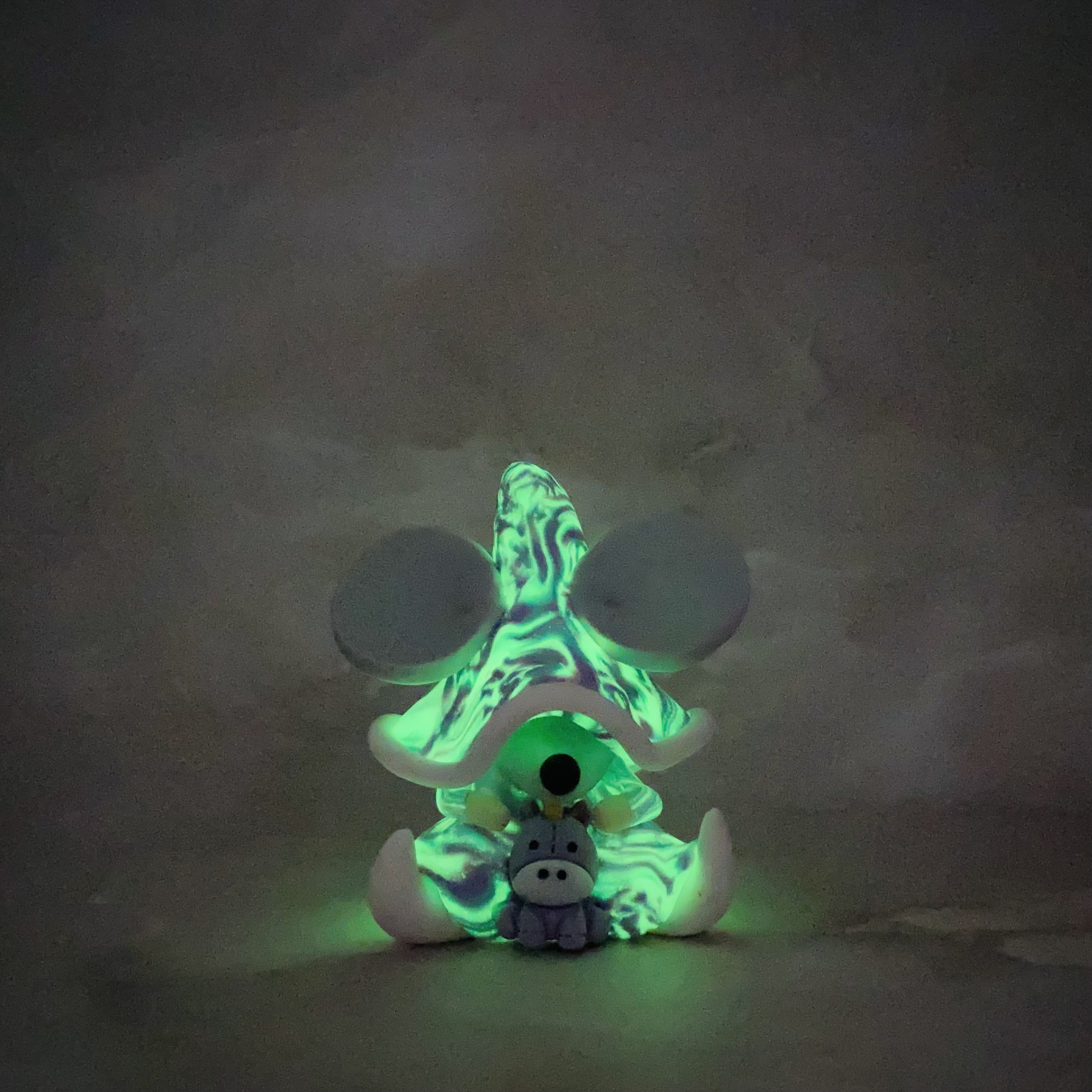 🌟Un être lumineux : grâce à sa dose de pâte phosphorescente, ce compagnon diffuse une douce lumière dans l’obscurité et aide au coucher des plus anxieux.